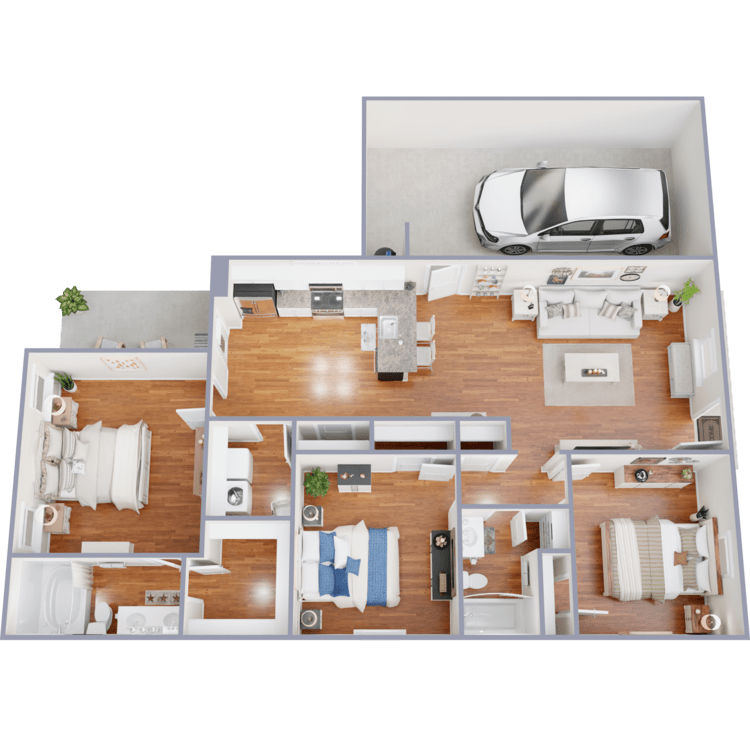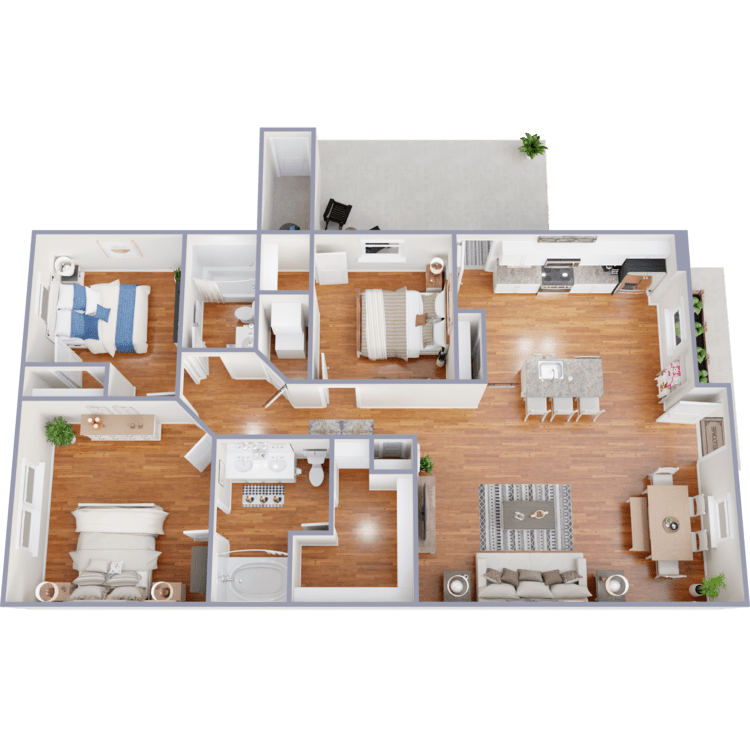 We proudly offer stylish two, three, and four-bedroom homes for rent. Prepare delicious meals in the kitchen with stainless steel appliances and granite countertops, and take advantage of the extra storage space and large closets. Each home also has ceiling fans, a balcony or patio, luxury vinyl flooring, and an in-home washer and dryer. Feel at home from the moment you arrive in our pet-friendly community.